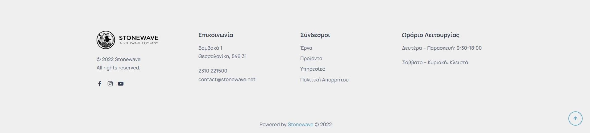 Στο Polly έχετε τη δυνατότητα να επιλέξετε ανάμεσα σε δύο στυλ footer, Classic και Angled, ώστε να δημιουργήσετε ένα footer που ταιριάζει στο συνολικό ύφος και την ταυτότητα της ιστοσελίδας σας.