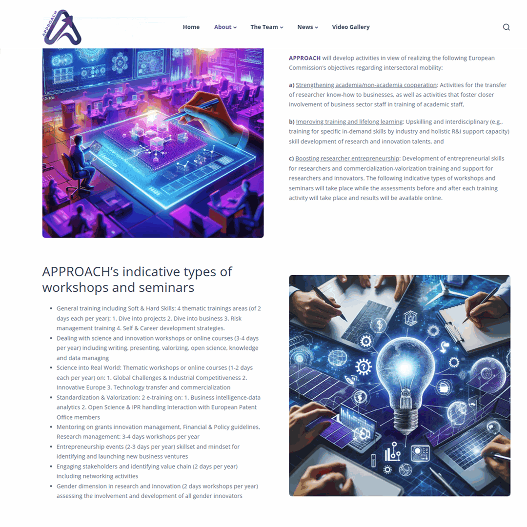 Το Approach είναι ένα ευρωπαϊκό ερευνητικό έργο που χρηματοδοτείται από το Horizon Europe, το οποίο στοχεύει στην ενίσχυση της εκπαίδευσης, της κινητικότητας και της επαγγελματικής ανάπτυξης νέων ερευνητών και καινοτόμων, με ειδική εστίαση στην ανάπτυξη τεχνολογιών αιχμής για φωτοβολταϊκές/ηλιακές εφαρμογές μέσω προηγμένων φωτονικών διεργασιών ενέργειας.